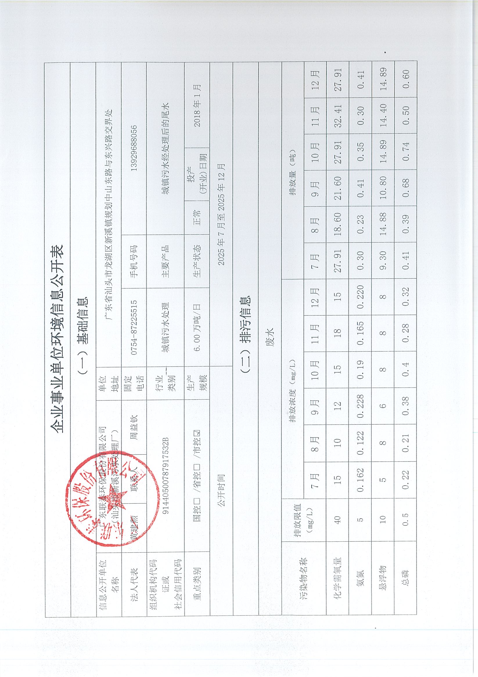 信息公開單位名稱: 廣東聯(lián)泰環(huán)保股份有限公司(新溪污水處理廠)
